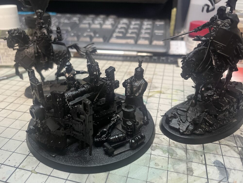 スピアヘッド箱にはスティールヘルム×10体、フリーギルドキャバリア×5体、グレイトキャノン×1体、フリーギルドキャバリアマーシャル×1体が入っています。この箱だけでもスピアヘッドルールで遊ぶ事が出来ます。