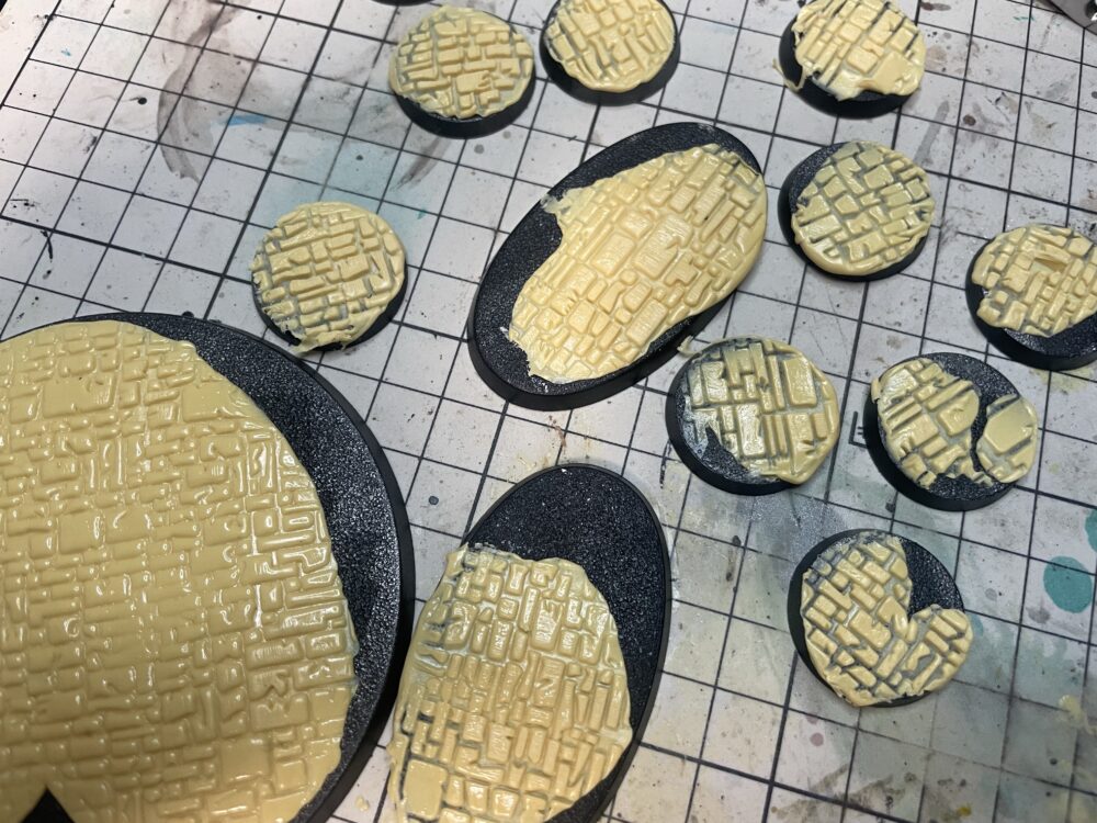 本体は一応出来たのでベースも作っていきます。まずは石畳を作りたいので多用しているローリングピンで型取りします。エポパテの上に転がすだけのお手軽アイテム。