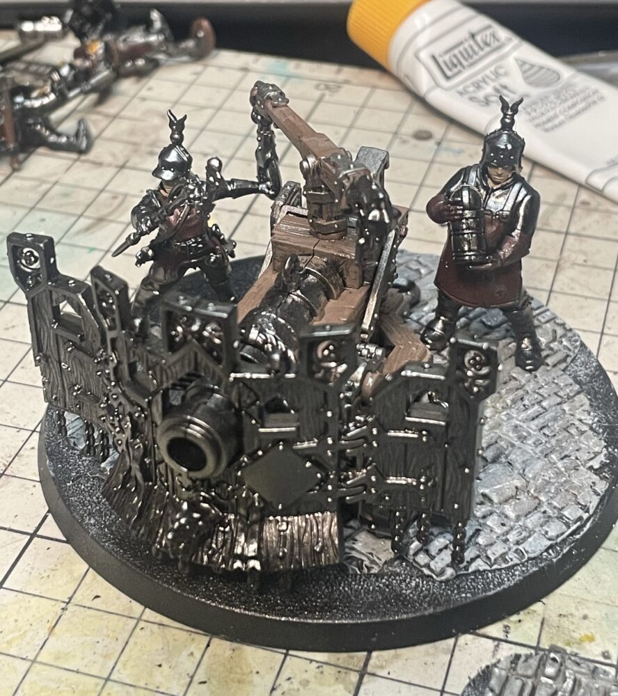 塗装を終えました、かなり渋みのあるシルバーです。シンプルにかっこいい。スピアヘッド分全て塗装。このメタリック部分は残しつつペイントを施していきます。狙っていた通り異素材の感じが上手く行きました。筆塗りだけでは出せない表現になったので満足です。