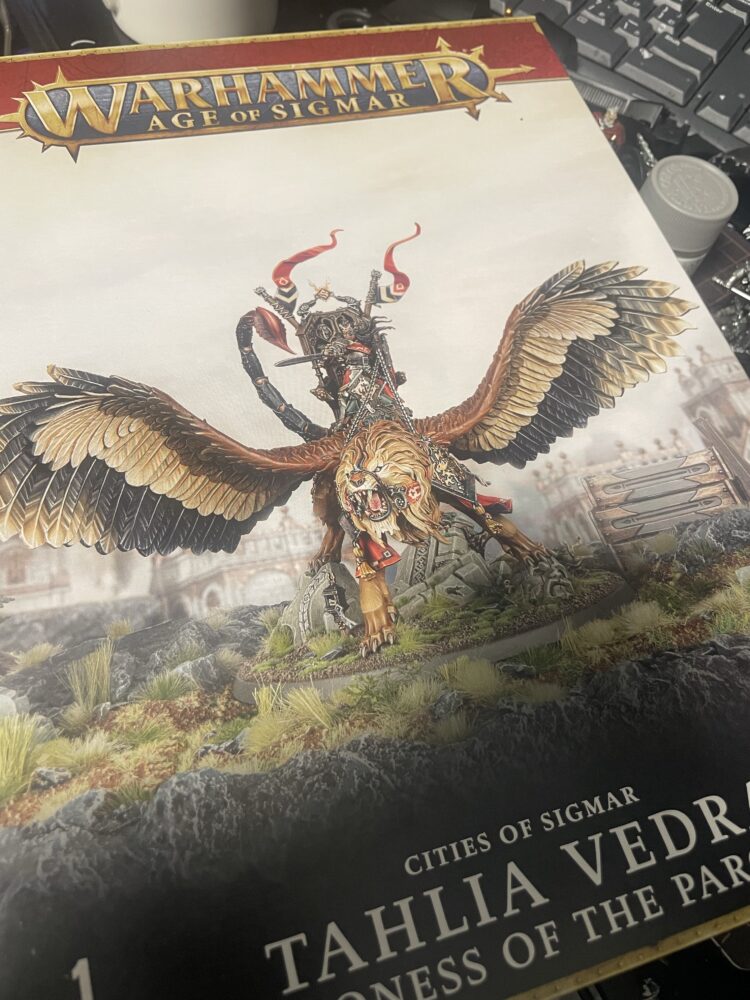 今回はシティオブシグマーの大型センターピースのユニットターリア・ヴェドラを作成していこうと思います。ゲーム的には1ユニットでポイントコストも相当高い部類ですが能力的には絶対的かと言われるとそこまででもなく人に寄って評価は分かれるというなんとも微妙な位置付けにはなってます。