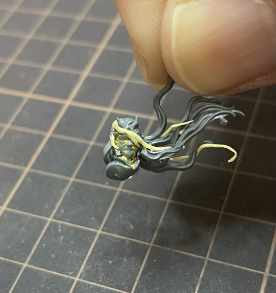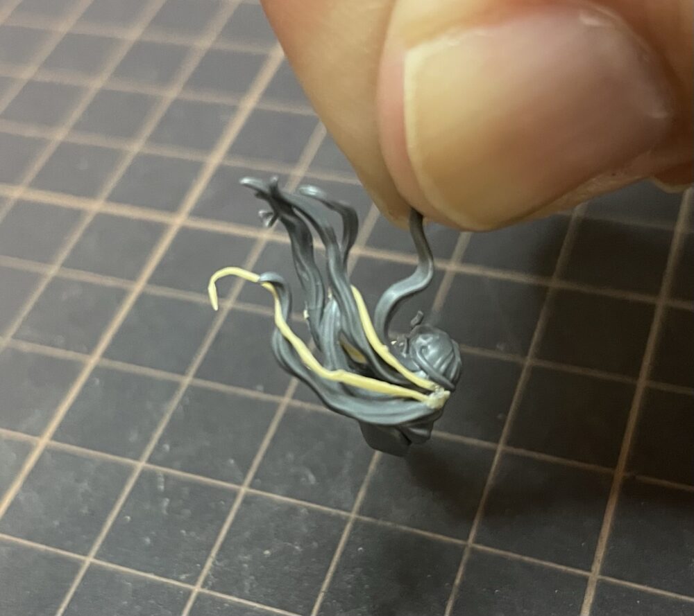 そしてターリアの顔は正直かなりいかつい顔面は更に老け顔の造形なのでここはどうにかしたいので慎重にヤスリで修正していきますがヘッドルーペを使っても見え辛いぐらいの小ささ。パテで修正もやっては見ましたが厳しそうなので中止。